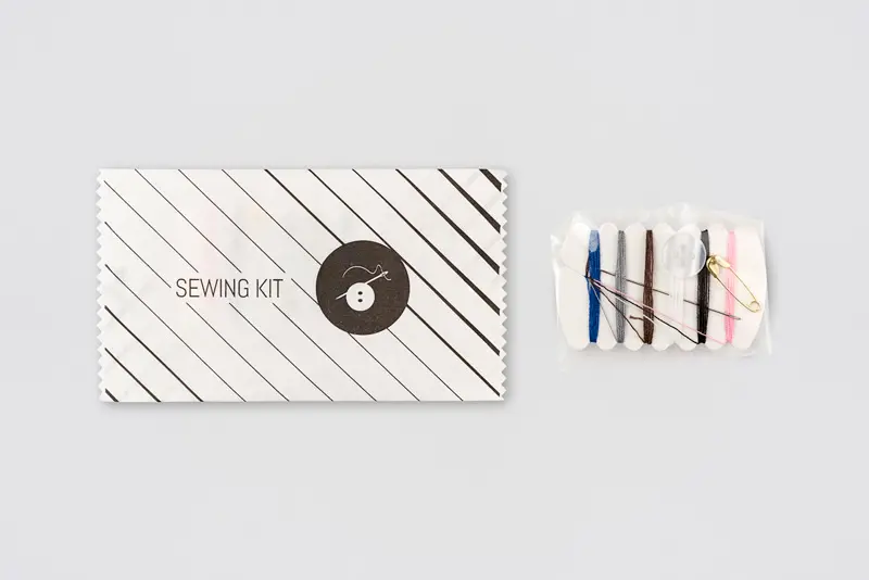 Mit diesem Nähset können Ihre Gäste beispielsweise schnell mal einen lockeren Knopf fixieren bevor sie zum bevorstehenden Meeting gehen. Schenken Sie Ihren Gästen diese nützliche Aufmerksamkeit. Verpackt in Papiersachet.