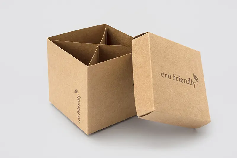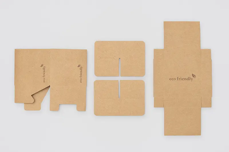 Amenities Box LEER aus Recyclingkarton Größe 7cm*7cm*7cm, leer, zusammengelegt (nicht gefaltet); Amenities Box aus Recyclingkarton mit Aufdruck "ECO FRIENDLY" in Farbe braun