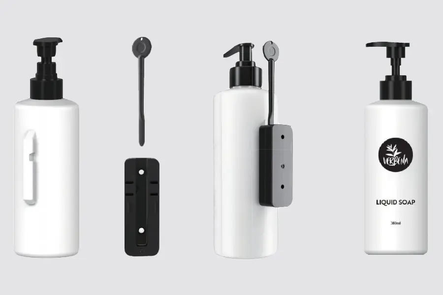 Verleihen Sie Ihrem Badezimmer einen Hauch von Eleganz und Funktionalität mit unserem Spendersystem Flaschenhalter aus der Magic Bottle Serie. Perfekt für alle, die Wert auf Sauberkeit und Stil legen.