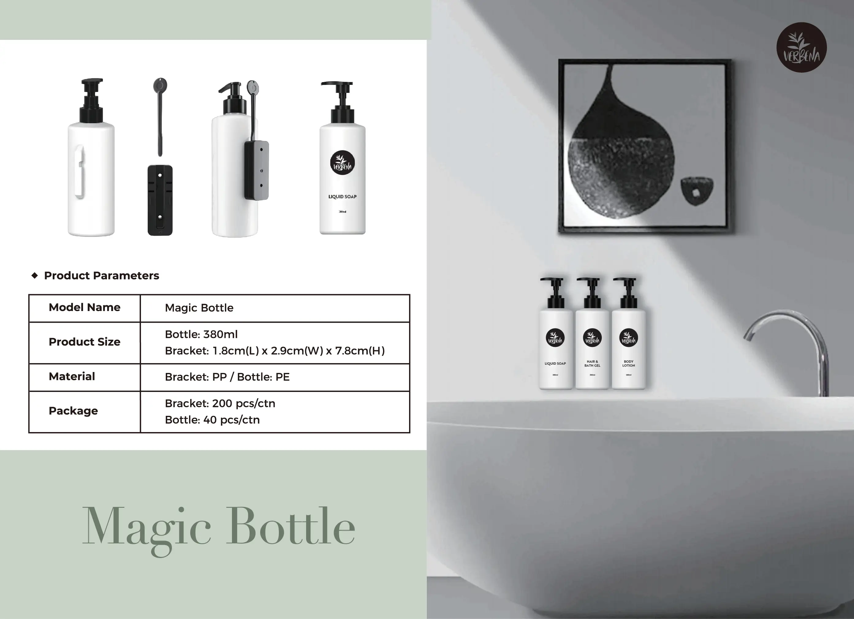 Entdecken Sie unser exklusives Spendersystem der "Magic Bottle " – die perfekte Ergänzung für jedes Badezimmer. Der stilvolle Flaschenhalter fügt sich nahtlos in jede moderne Badezimmereinrichtung ein. Besonders hervorzuheben ist die versteckte Aufhängung, die für ein elegantes und sauberes Erscheinungsbild sorgt.