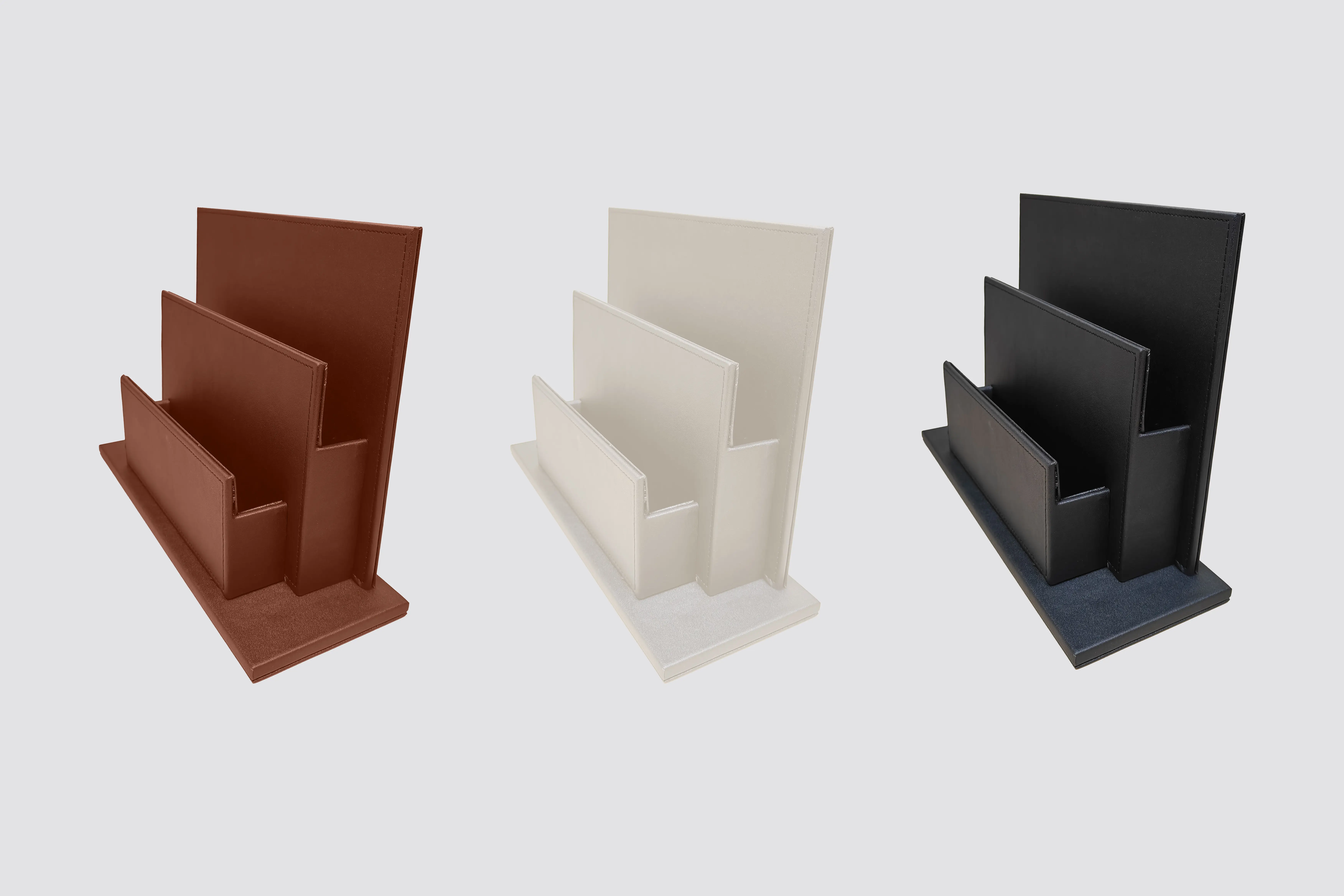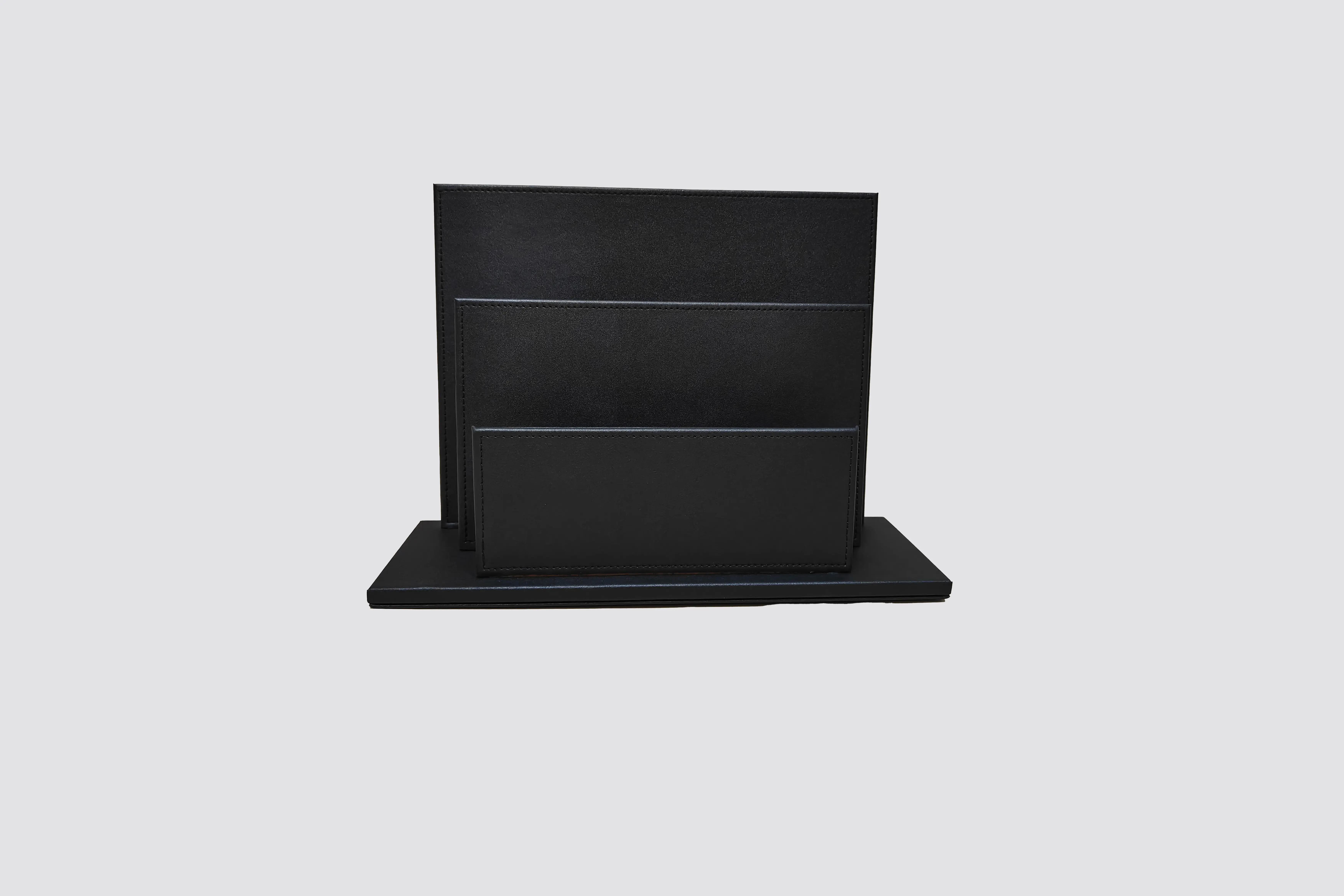 Der Prospekthalter bietet eine elegante Präsentationslösung für Informationsmaterial und sorgt für Ordnung und Übersichtlichkeit. Durch das hochwertige PU-Leder und die stabile Holzstruktur wirkt er besonders edel und langlebig. Ideal für den Einsatz in anspruchsvollen Umgebungen wie Hotels, Wellnessbereichen oder Tagungen, überzeugt er durch Funktionalität und ansprechendes Design.