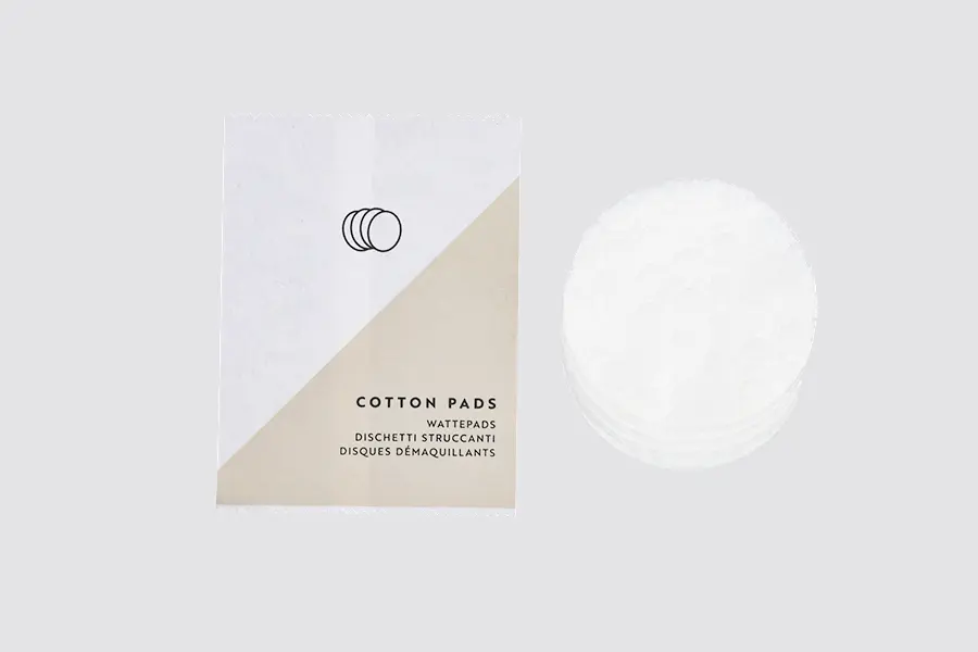 4 cotton pads made of 100% organic cotton in paper sachet.