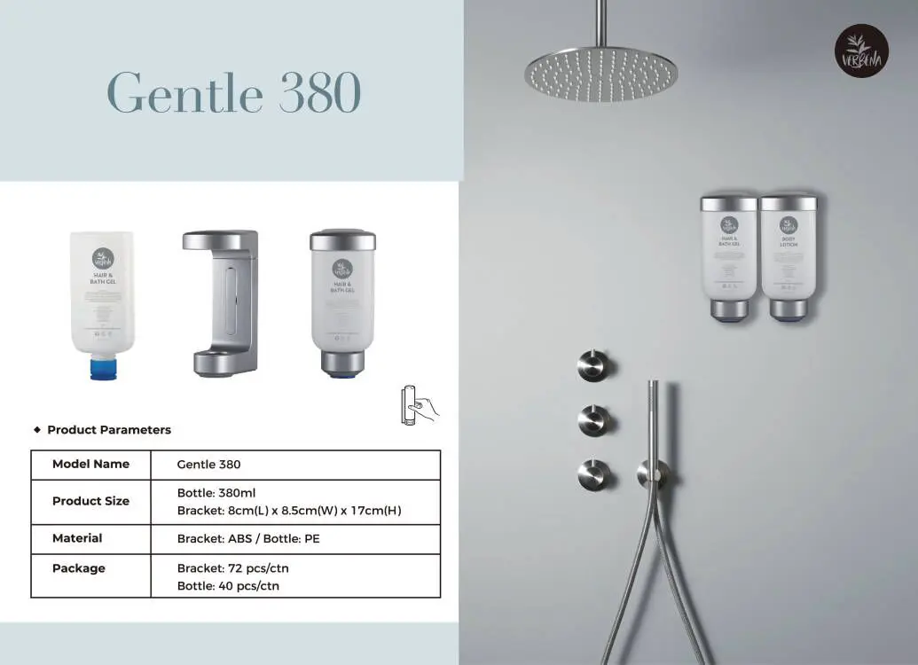 Add a touch of elegance and functionality to your bathroom with our dispenser system bottle holder from the Gentle 380 Series. Perfect for those who value cleanliness and style.