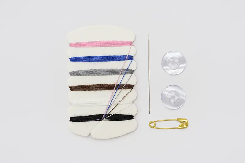 Sewing kit, white, 6 threads, 2 buttons, 1 safety pin, 1 needle, single packed in PLA bag, 500 pcs./inner package