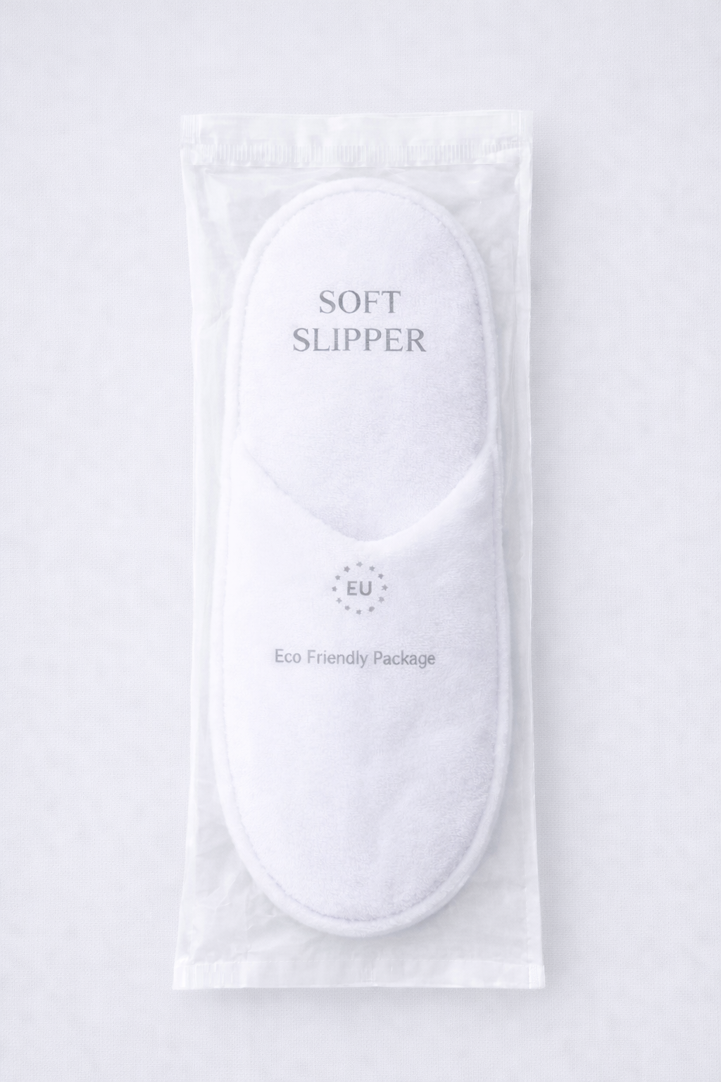 Made from skin-friendly polycotton, the Soft slippers stand out for their hygienic properties and pleasant soft texture. The 5 mm EVA sole is lightweight, flexible, and textured, providing reliable stability on different floor types. Especially noteworthy: these hotel slippers are MADE IN EU – a mark of quality ensuring excellent workmanship and short supply chains. Individually packed in a hygienic nonwoven bag, they are ready for immediate use – perfect for stylish guest service.