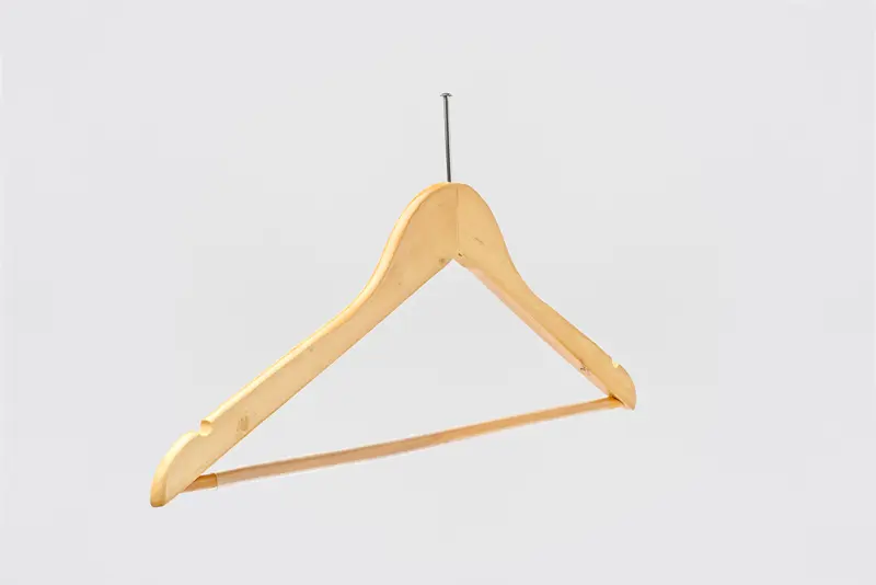Wooden clothes hanger with chrome-plated anti-theft device, 44x1.2cm