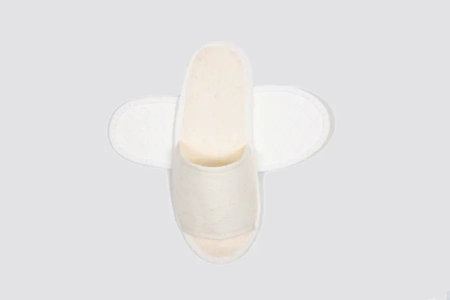 Las zapatillas de hotel Camellia combinan materiales naturales y comodidad, siendo la opción ideal para huéspedes que valoran la calidad y la sostenibilidad. Con su diseño abierto y aspecto natural, transmiten una elegancia sencilla, perfecta para hoteles de categoría, chalets o apartamentos vacacionales. Gracias a la mezcla de fibras naturales resistentes y una suela ligera de caña de azúcar, ofrecen una experiencia de uso cómoda y segura – pensadas para interiores. Cada par se envasa individualmente de forma higiénica y sin plástico, garantizando funcionalidad y conciencia ecológica.