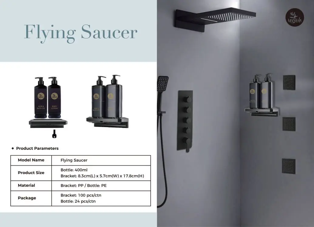 Añada un toque de elegancia y funcionalidad a su baño con nuestro sistema dispensador porta botellas de la Serie Flying Saucer. Perfecto para aquellos que valoran la limpieza y el estilo.