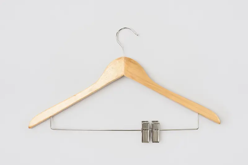 Info sui prodotti "Appendiabiti in legna con gancio e pinze gonna"