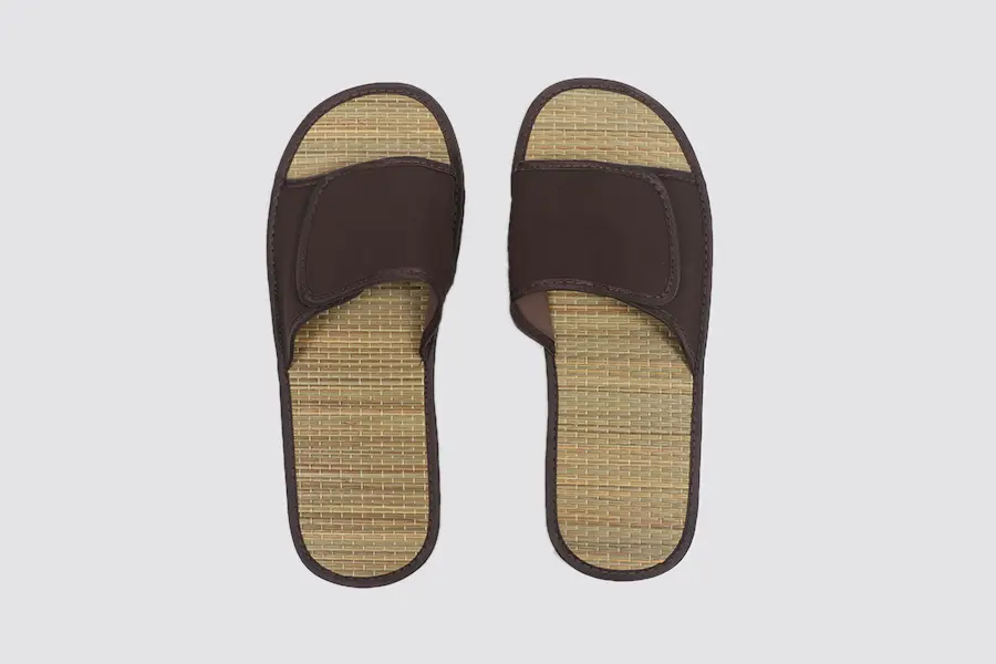 Le Bamboo Velcro pantofole wellness uniscono comfort, funzionalità e stile naturale in un design elegante. Nel colore marrone, offrono una calzata aperta e traspirante, regolabile grazie alla pratica chiusura a strappo. Il morbido materiale in similpelle abbinato alla soletta in paglia garantisce una camminata confortevole e ariosa, ideale sia per ambienti interni che esterni. Perfette per hotel, spa, centri benessere o momenti di relax privati, queste pantofole rappresentano la scelta ideale per comfort e stile.