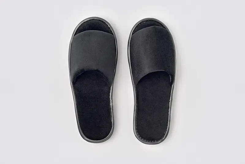 Info sui prodotti "P-Andy Velour, aperta, colore nero, misura 29,5cm | pantofola per hotel"