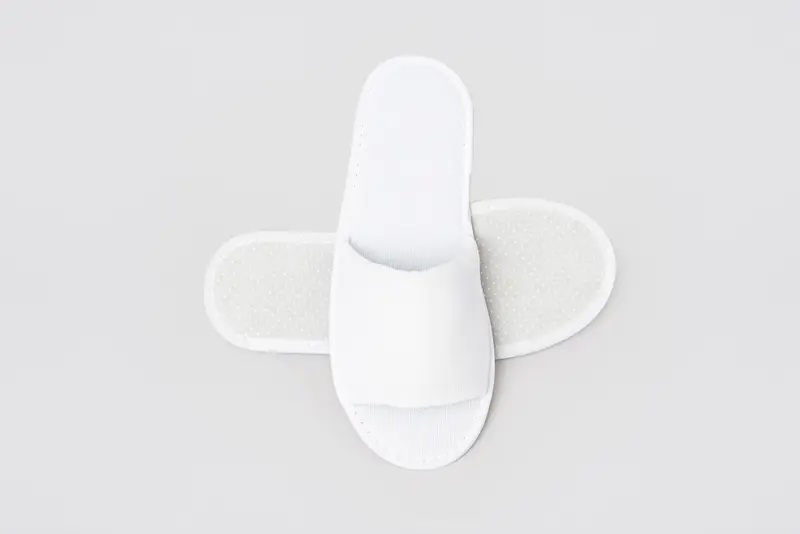 Le ciabatte da hotel P-London colpiscono per il loro design semplice e intramontabile in bianco e garantiscono agli ospiti un’esperienza di utilizzo confortevole. Grazie alla forma aperta, risultano pratiche e comode nell’uso quotidiano – sia in camera, durante convegni o eventi. Il morbido poliestere offre comfort, mentre la suola con puntini in PVC garantisce stabilità su diversi pavimenti dell’hotel. Con una lunghezza di 28,2 cm, sono perfette per un uso unisex. Ogni ciabatta è confezionata singolarmente con una fascetta in carta, riducendo così l’uso di imballaggi.
