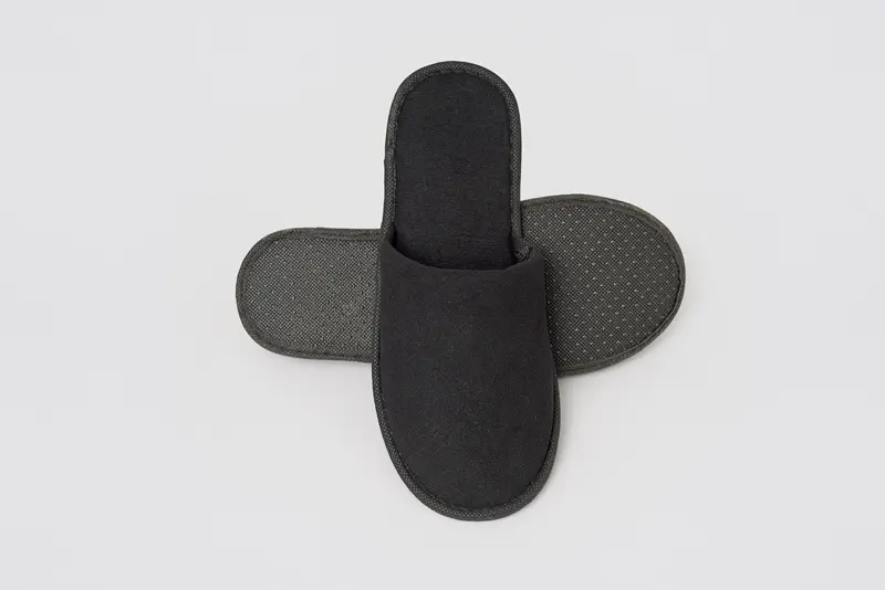 Le ciabatte da hotel P-London colpiscono per il loro design semplice e intramontabile in nero e garantiscono agli ospiti un’esperienza di utilizzo confortevole. Grazie alla forma chiusa, risultano pratiche e comode nell’uso quotidiano – sia in camera, durante convegni o eventi. Il morbido poliestere offre comfort, mentre la suola con puntini in PVC garantisce stabilità su diversi pavimenti dell’hotel. Con una lunghezza di 28,2 cm, sono perfette per un uso unisex. Ogni ciabatta è confezionata singolarmente con una fascetta in carta, riducendo così l’uso di imballaggi.