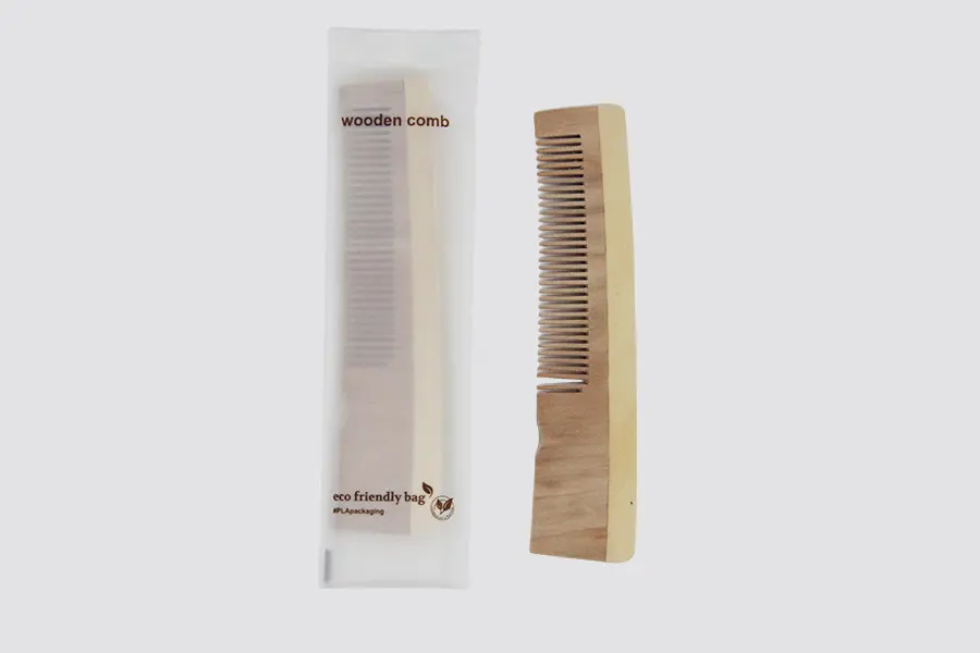 Pettine di legno in sacchetto di PLA 13,5x3cm, 100 pz./confezione interna