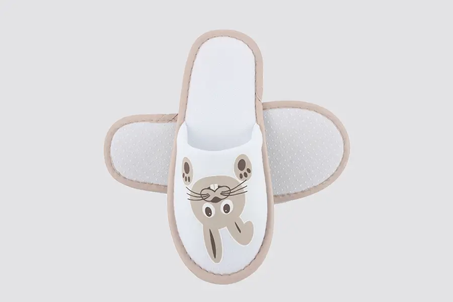 Le ciabattine per bambini Toni sono la scelta ideale per hotel, case vacanza o eventi. Grazie alla loro forma chiusa, offrono ai piccoli ospiti non solo comfort ma anche una piacevole esperienza di camminata. Il poliestere morbido assicura una sensazione gradevole sulla pelle ed è arricchito da un simpatico motivo per bambini – pratico, igienico e adatto ai più piccoli. La suola con puntini in PVC rende le ciabattine versatili e favorisce movimenti naturali.