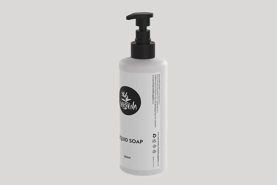 VERBENA MAGIC BOTTLE - sapone liquido 380ml, tappo con pompa "Magic Bottle". La nostra linea di cosmetici per hotel Verbena rigenera il corpo e lo spirito grazie all’essenza rinfrescante di verbena. Il design sobrio ed elegante della linea Verbena si adatta ad ogni ambiente.